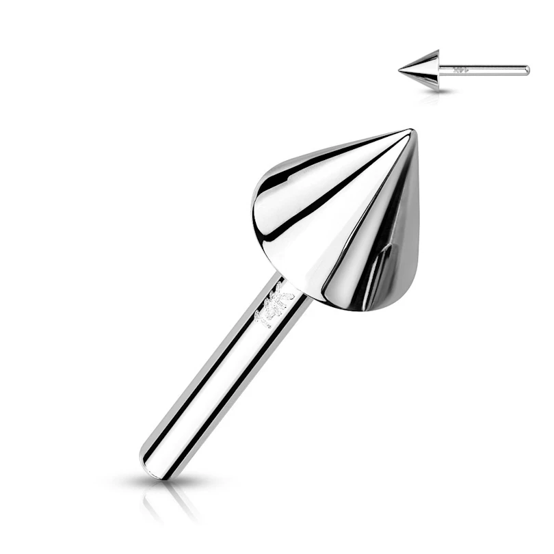 Diese Tops sind in verschiedenen Designs erhältlich, darunter ein Stern, eine Kugel, ein Dorn, ein Halbmond usw. Einige Modelle sind auch in verschiedenen Durchmessern erhältlich. Und zu guter Letzt sind sie alle in weißem und gelbem 14-Karat-Gold erhältlich.