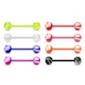 In diesem Set erhältst du acht Zungenpiercings mit einem selbst kürzbaren Teflonstab und einer Acrylkugel in verschiedenen Farben.