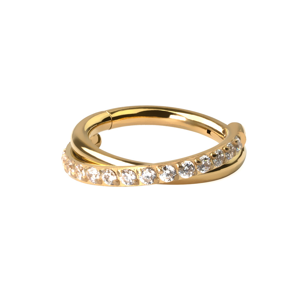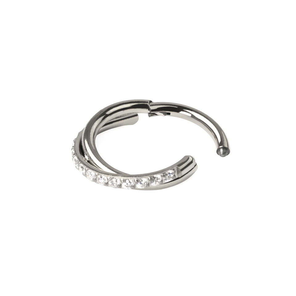 Dieser atemberaubende Ring ist sowohl schön als auch praktisch. Der Klappmechanismus macht das Einsetzen des Schmucks schnell und einfach; du musst nur das Segment aufziehen, es in dein Piercing einführen und es zudrücken, bis ein Klick erfolgt.