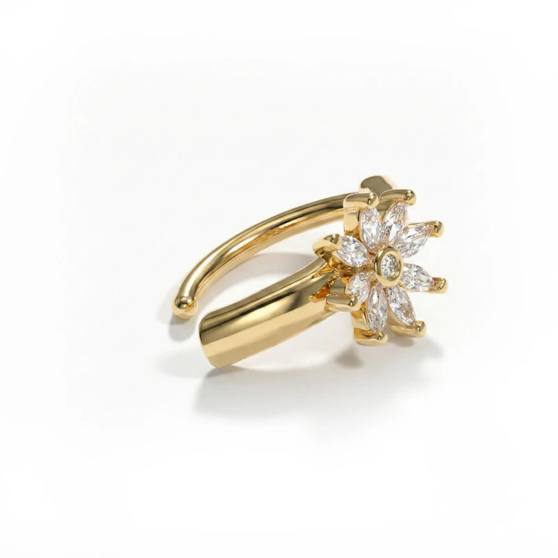 Dieser schicke Bauchnabel-Clicker ist mit einer funkelnden Blume in der Mitte versehen. Die Blume besteht aus 9 kubischen Zirkoniasteinen. Der Ring ist wahlweise in goldener oder silberner Farbe erhältlich.