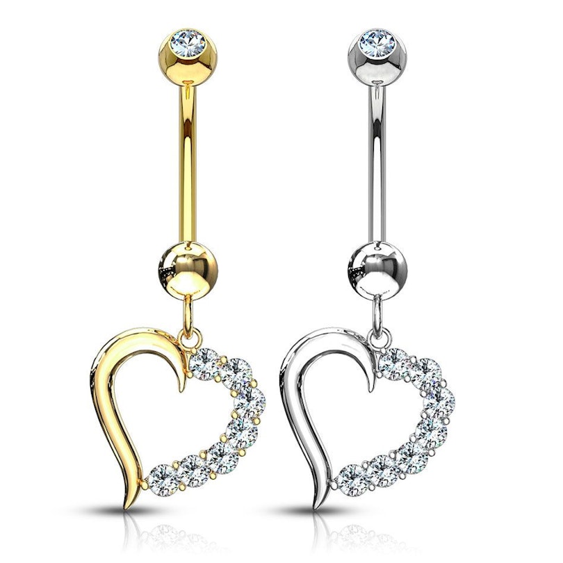 Name: Bauchnabelpiercing aus 14 Karat Gold mit steinbesetztem Herz als Anhänger