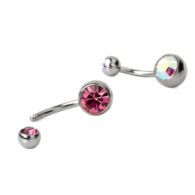 Bauchnabelpiercing aus Chirurgenstahl mit verschieden farbigen Steinen