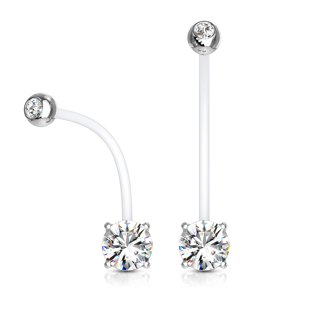 Dieses Bauchnabelpiercing kann während der Schwangerschaft verwendet werden. Dies ist auf das Material zurückzuführen. Der Stab des Schmucks wird nämlich aus PTFE gefertigt. Dies ist ein weiches und flexibles Material, somit kann es sich dem Wachstum des Bauches anpassen. Damit ist es möglich, dass dich dieser Schmuck über die gesamte Schwangerschaft hinweg begleitet.
