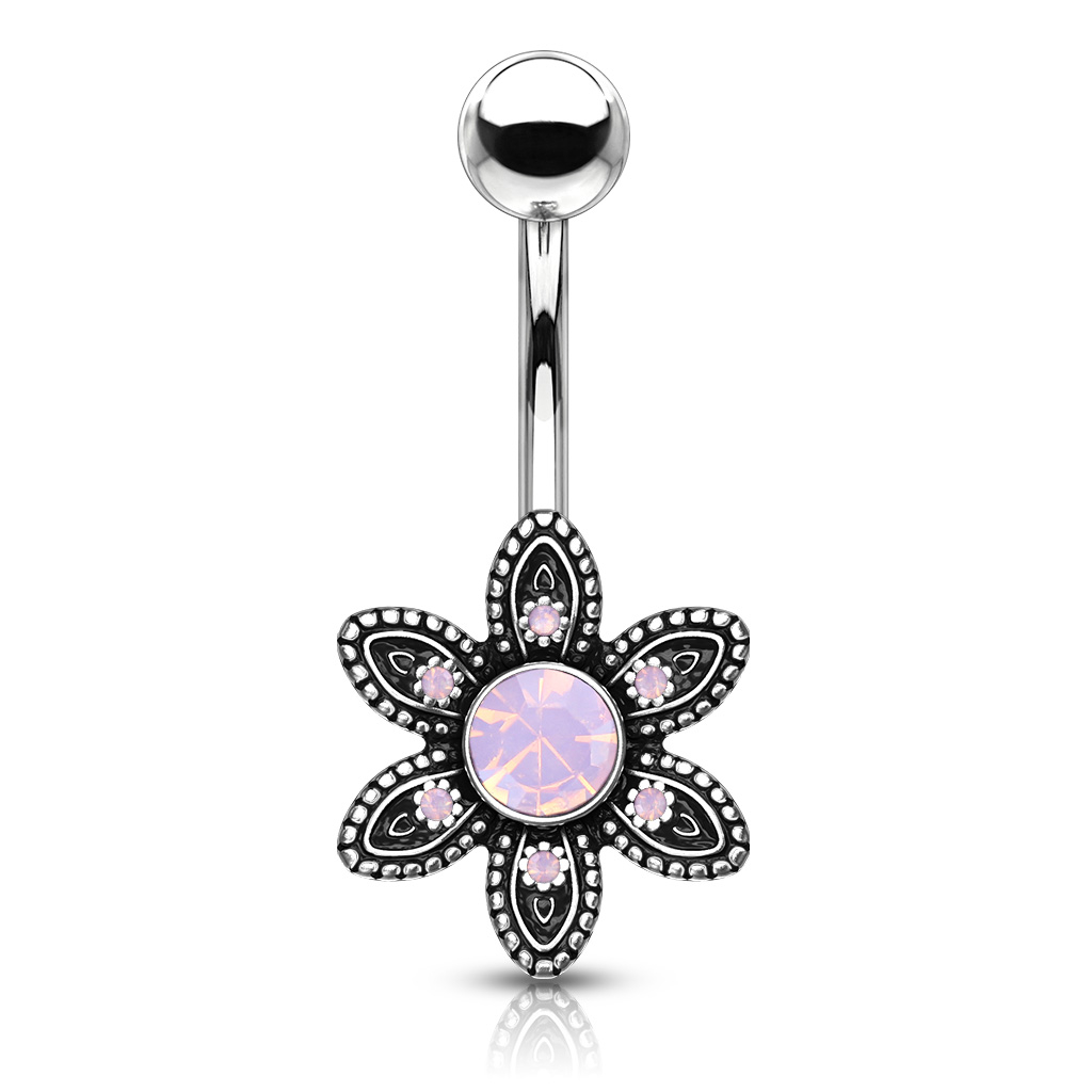 Bauchnabelpiercing mit Blume und runden Opaliten