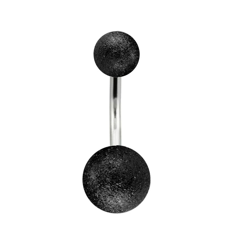 Dieses Bauchnabelpiercing glitzert und glimmert, sobald das Licht die schönen Kugeln berührt. Die Kugeln bestehen aus Chirurgenstahl, deren Oberfläche aber rau ist, so als wenn wie unter einem Hammer gelegen hätten. Das Geheimnis ist aber, dass die Kugeln sandgeblasen wurden, was eigentlich nur bedeutet, dass winzig kleine Sandpartikel mit einer hohen Geschwindigkeit auf die Kugeln geblasen wurden, was die Oberfläche so aufgeraut. So entsteht der Effekt, der sich am besten mit zu Staub gemahlenen Diamanten vergleichen lässt.