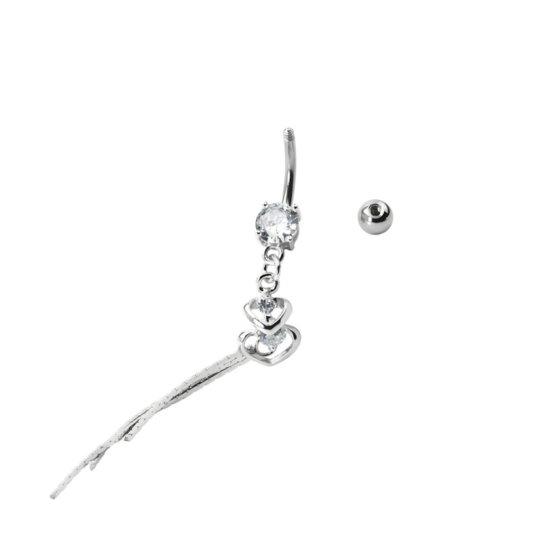 Name: Bauchnabelpiercing mit doppelten Herzanhänger und Steinen