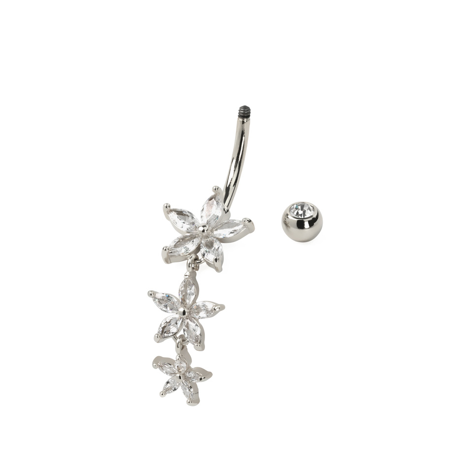 Name: Bauchnabelpiercing mit drei Marquise-Blumen als Anhänger