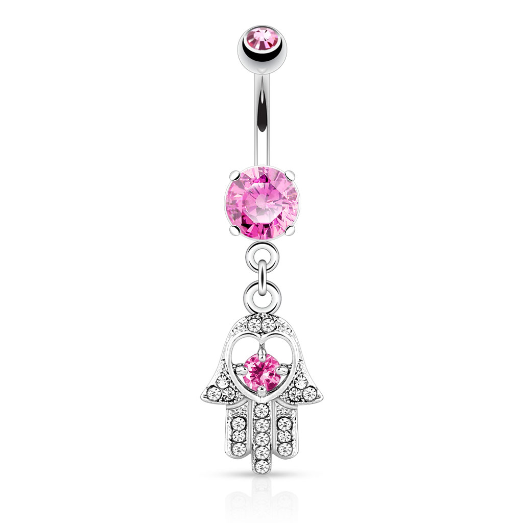 Name: Bauchnabelpiercing mit einem Stein und Hamsaanhänger