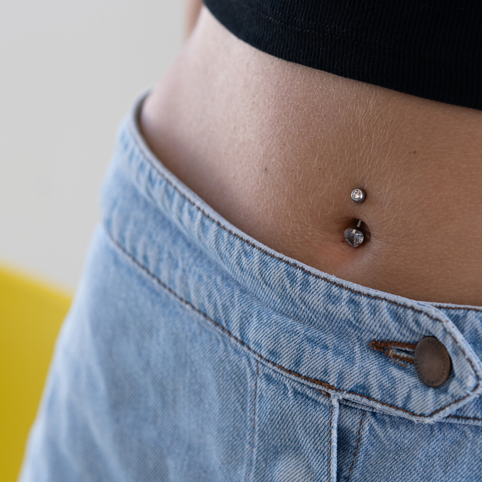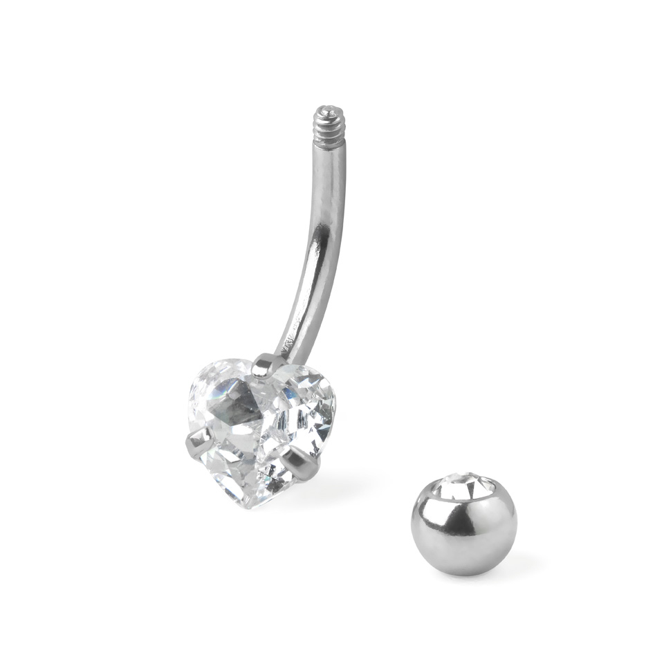 Elegant, süß und weiblich - das sind die Worte, die dieses Bauchnabalpiercing mit dem Herzstein am besten beschreiben.