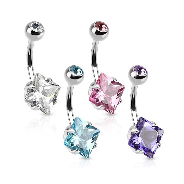 Name: Bauchnabelpiercing mit einem viereckigen Stein