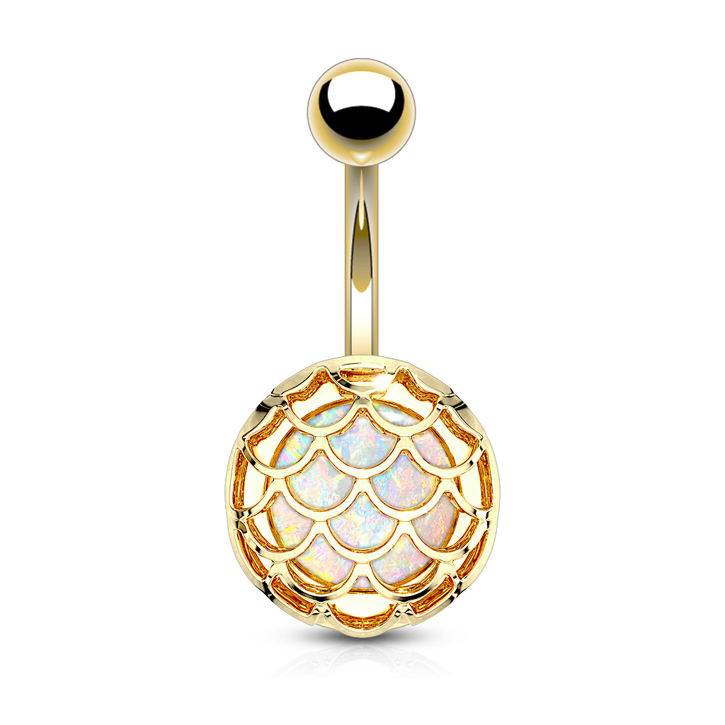 Name: Bauchnabelpiercing mit eingekapseltem Opalstein in einem Schuppendesign