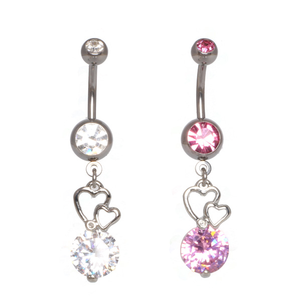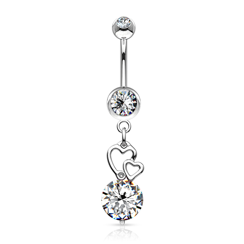Bestelle dir dieses schöne Bauchnabelpiercing mit den zwei Herzen und dem großen Kristall noch heute und trage ihn mit Glück schon morgen im Nabel.