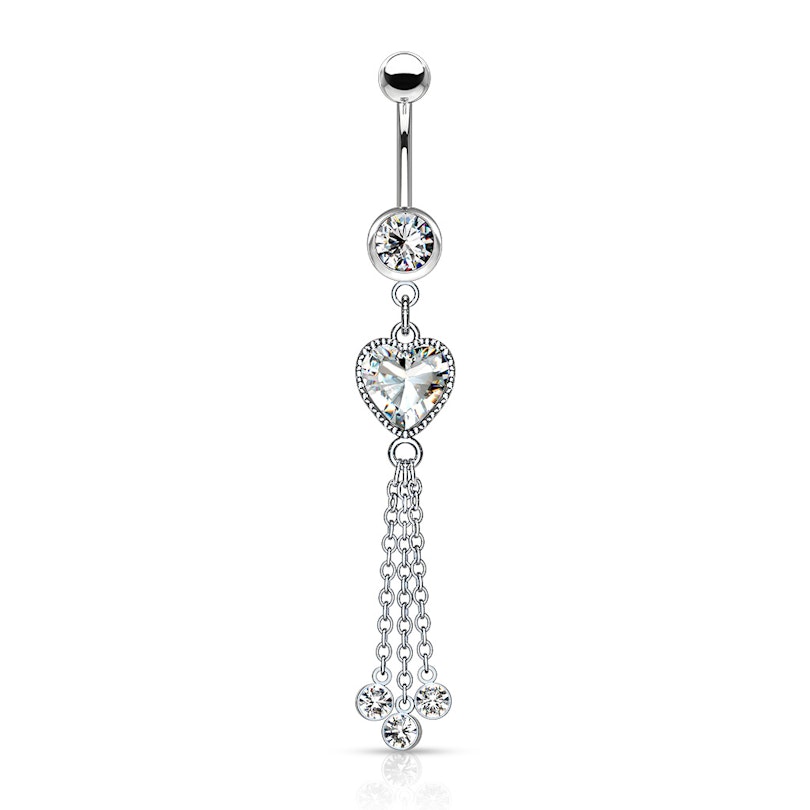 Bauchnabelpiercing mit Herzstein und Ketten