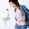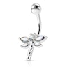 Dieses wunderschöne Bauchnabelpiercing hat eine Libelle anstelle einer Bundkugel, die mit fünf kleinen, klaren Steinen verziert wurde. Dieses Schmuckstück hat natürlich die normalen Standardmaße und besteht aus dem sicheren Chirurgenstahl, welches kein Nickel frei gibt.
