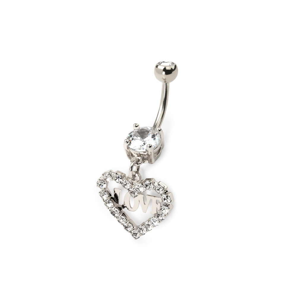 Name: Bauchnabelpiercing mit Steinherz und Love-Text