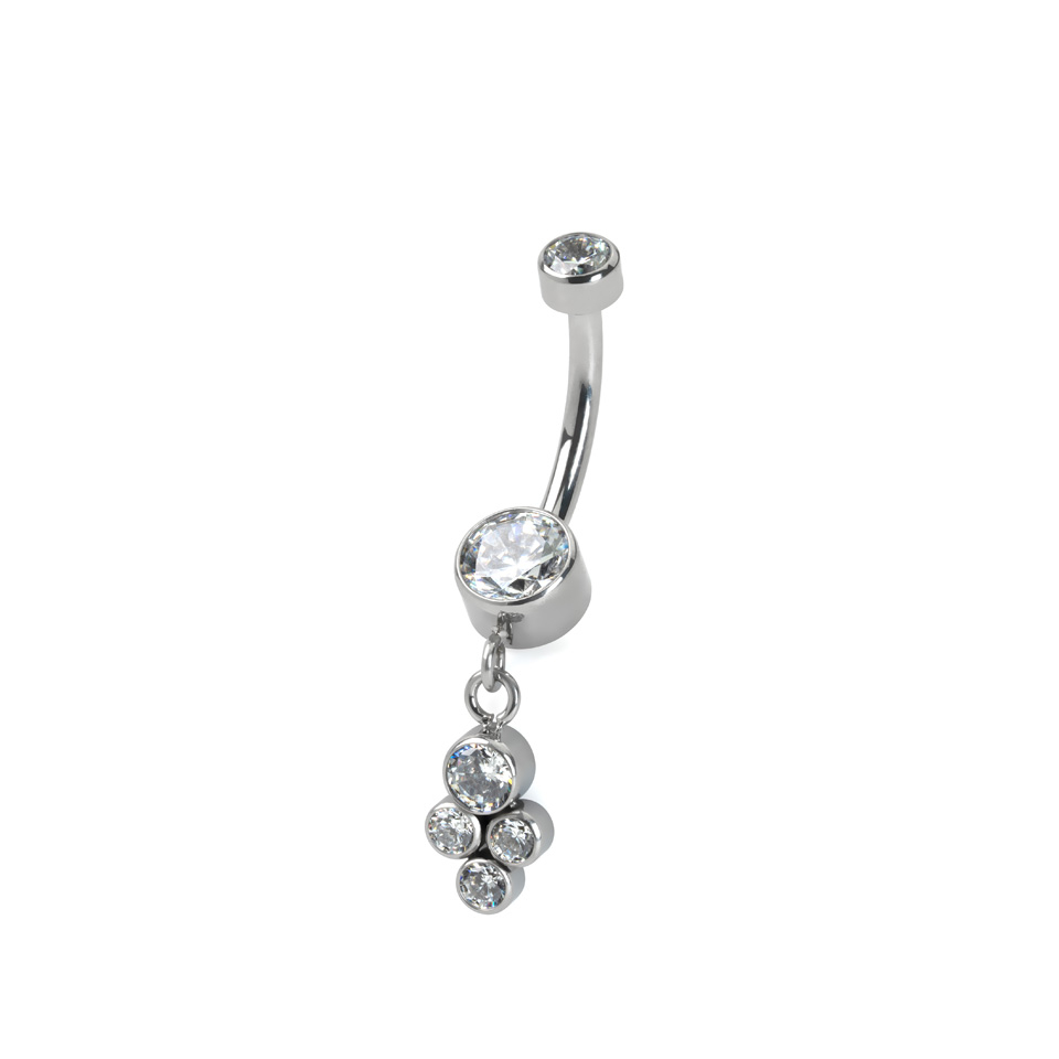 Bauchnabelring aus Titan mit hängenden Steinen in Lünettenfassung