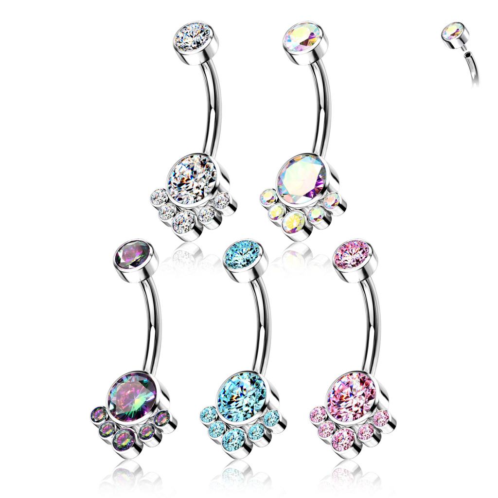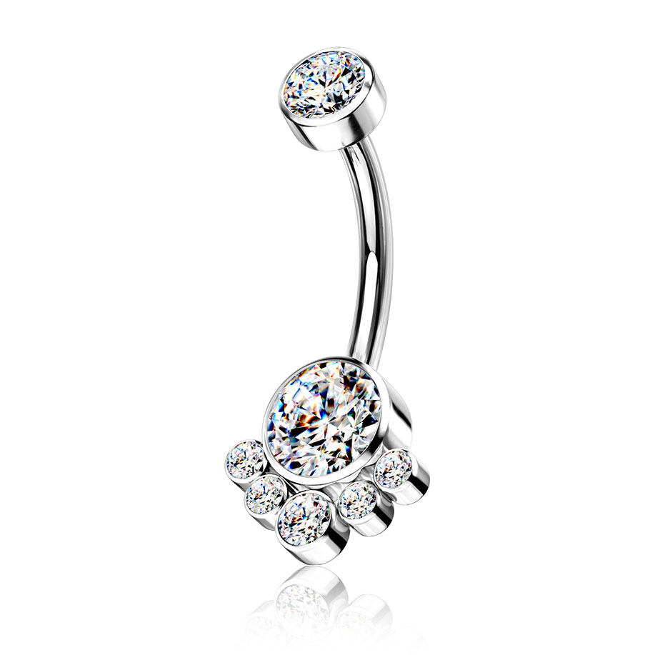 Bauchnabelring aus Titan mit runden Clustersteinen