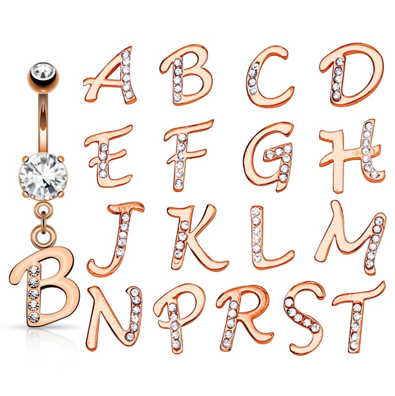 Vielen Menschen ist es sehr wichtig, dass ihre Körperverzierungen personalisiert sind - dies gilt auch für Piercingschmuck. Hier hast du das Glück, dass du genau einen solchen personalisierbaren Schmuck gefunden hast. Hier siehst du nämlich ein Bauchnabelpiercing mit einem steinbesetzten als Anhänger. Du kannst oben selbst auswählen, welchen Buchstaben du für dieses Bauchnabelpiercing wünschst.