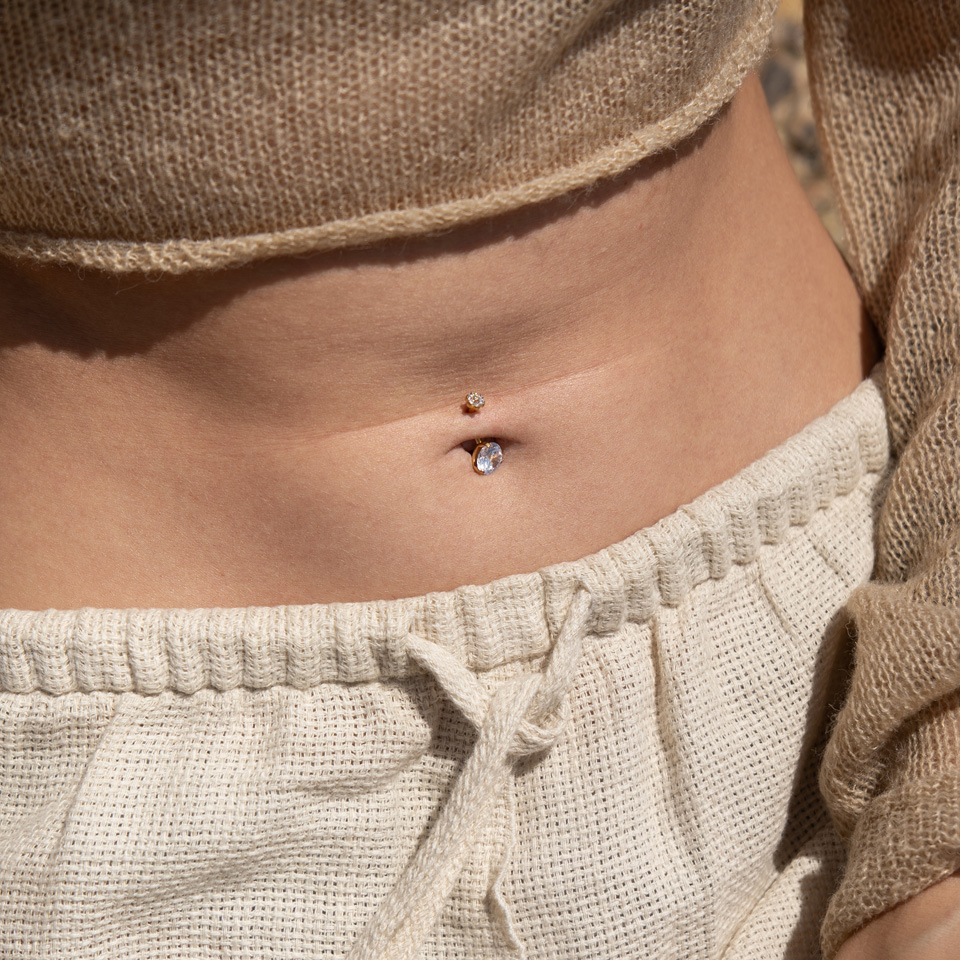 Bauchnabelring mit großem Stein und hübschem Blumenaufsatz