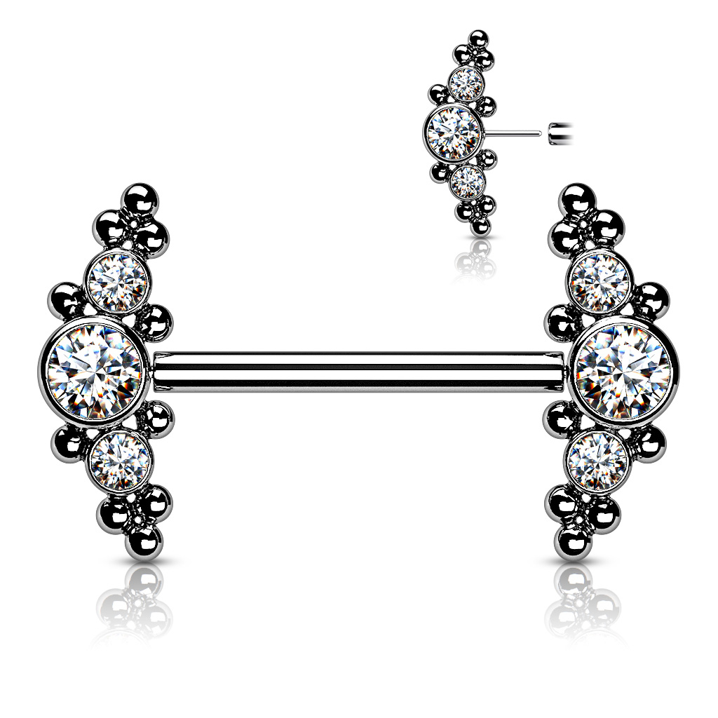 Brustwarzenpiercing aus Titan mit gewindelosen Cluster-Enden