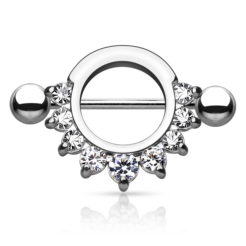 Name: Brustwarzenpiercing mit einem Halbmond aus Steinen