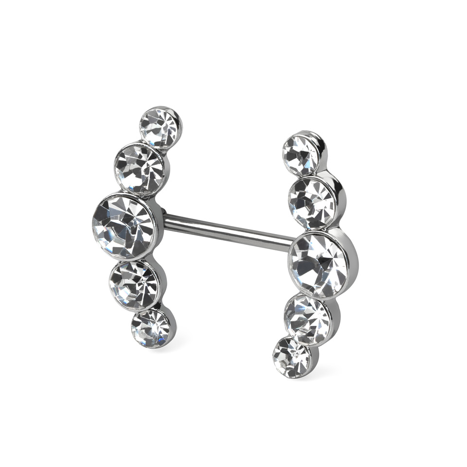 Brustwarzenpiercing mit gebogenen Steinreihen