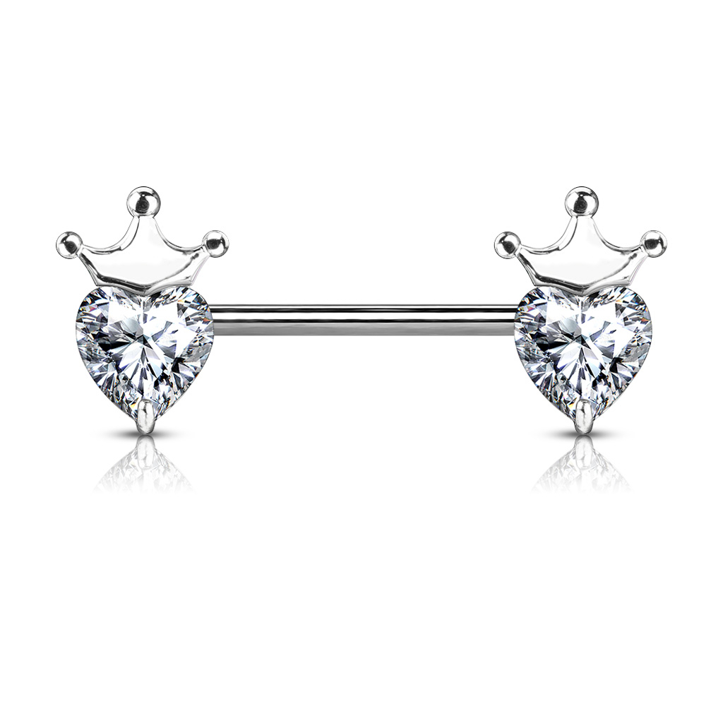 Brustwarzenpiercing mit Krone und herzförmigen Steinen