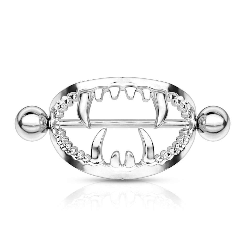 Name: Brustwarzenpiercing mit Mund und Zähnen