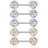 Neben der Farbe der Beschichtung kannst du auch die Farbe der Steine innerhalb der Rosen auswählen. Die Steine sind in drei unterschiedlichen Farben erhältlich, dies gilt jedoch nur für die blanke Version der Rosen, bei den Goldversionen kommen die Steine somit immer in einer klaren Version. Einige Blätter der Rosen sind perforiert, sodass du durch das Brustwarzenpiercing etwas mehr Haut zeigen kannst.