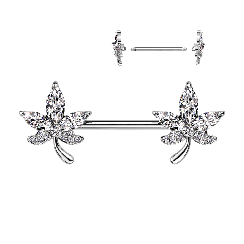 Name: Brustwarzenstab mit funkelnden steinbesetzten Blättern