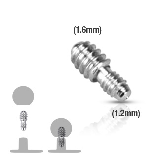 Der Stab hat an dem einen Ende ein Gewinde von 1,2 mm, was das Standardmaß für Dermals ist. Auf der anderen Seite sitzt ein Gewinde von 1,6 mm, welches die selbe Stärke ist, wie die meisten Kugeln haben. Jetzt kannst du also auch Kugeln mit einem innenseitigen Gewinde von 1,6 mm für dein Dermal verwenden.