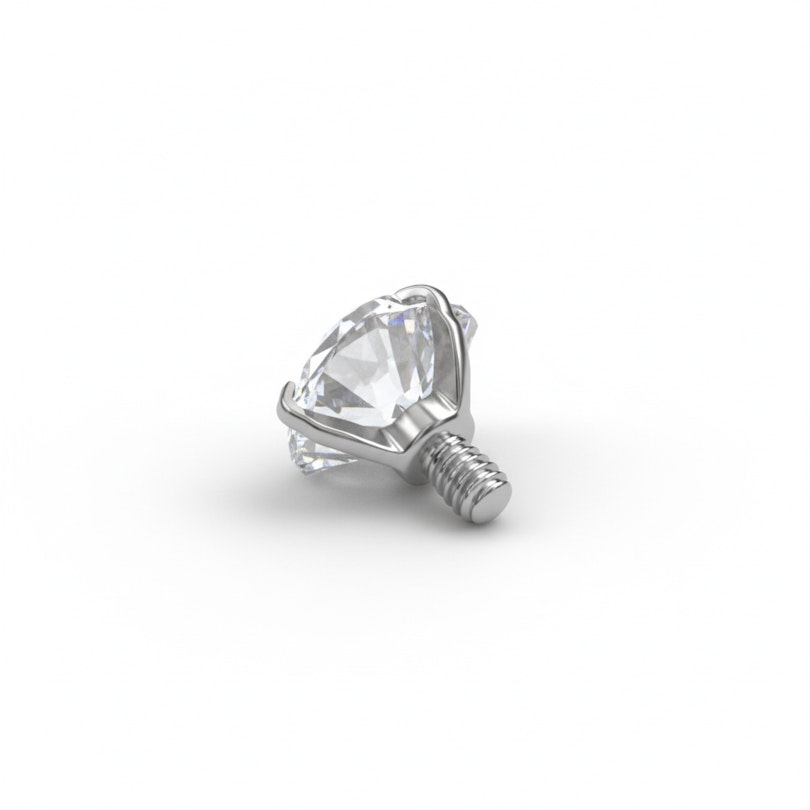 Manche Herzen zeigt man offen. Dieses hier bleibt etwas näher am Herzen. Dieser Dermal-Aufsatz aus Titan in Herzform weist einen klaren Zirkoniastein in einer schlichten Zackenfassung, der für einen zarten Glanz sorgt.