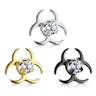 Der Schmuck hier ist jedoch völlig harmlos und kann einfach in deine Dermal Anchor Basis geschraubt werden. Auf der Rückseite ist der Schmuck flach, so dass wenn er ganz verschraubt ist, flach auf der Haut liegt. Das Biohazard Symbol besteht aus überlappenden offenen Kreisen, und einem geschlossenem Kreis in der Mitte. Bei diesem Dermal ist der mittlere Kreis durch einen schönen klaren Stein ersetzt. Der Stein ist klar, egal welche der verschiedenen Farbvarianten du wählst.