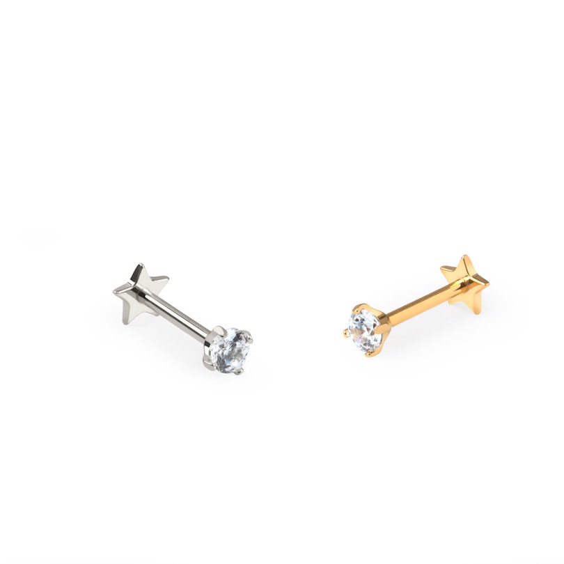 Name: Doppelseitiges gewindeloses Titan-Labret mit flachem Sternrücken und Stein