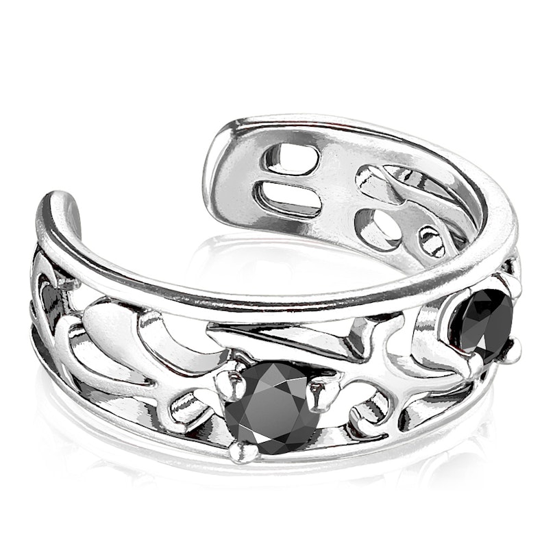Dieser Earcuff wurde mit einem verzweigten und filigranem Design versehen. Man kann viele kleine Zweige erkennen, welche sich über das gesamte Design winden. Der Schmuck ist mit zwei kleinen schwarzen Steinen ausgestattet, diese Steine sitzen auf der Vorderseite des Schmucks und ergeben so eine interessante asymmetrische Komposition. Genau diese Seite wird sichtbar sein, wenn du ihn im Ohrläppchen oder Knorpel trägst.