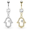 Edles Bauchnabelpiercing aus 14 Karat Gold mit steinverzierter Hamsahand