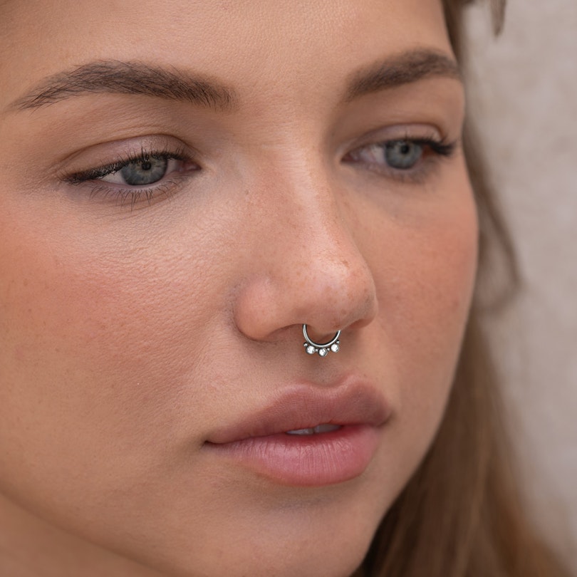 Fake Septumring mit drei Steinen und kleinen Perlen