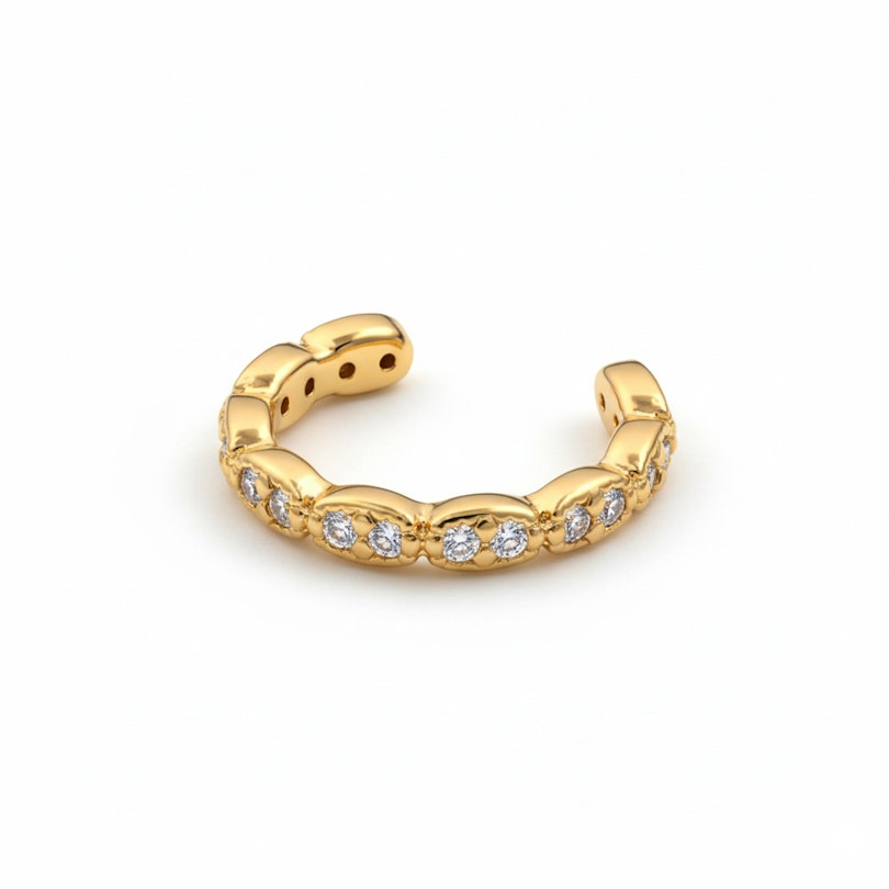 Hergestellt aus vergoldetem Messing, eignet er sich für die meisten Hauttypen und für den täglichen Gebrauch. Der Ear Cuff ist spritzwasserfest, robust und leicht anzulegen - perfekt für spontane Style-Updates ohne Verpflichtung.