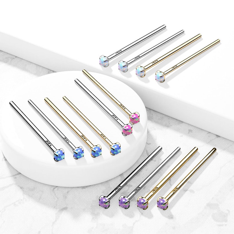 Name: Fish Tail Nasenpiercing aus 14 Karat Gold mit Opalstein