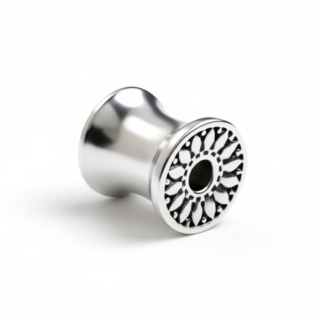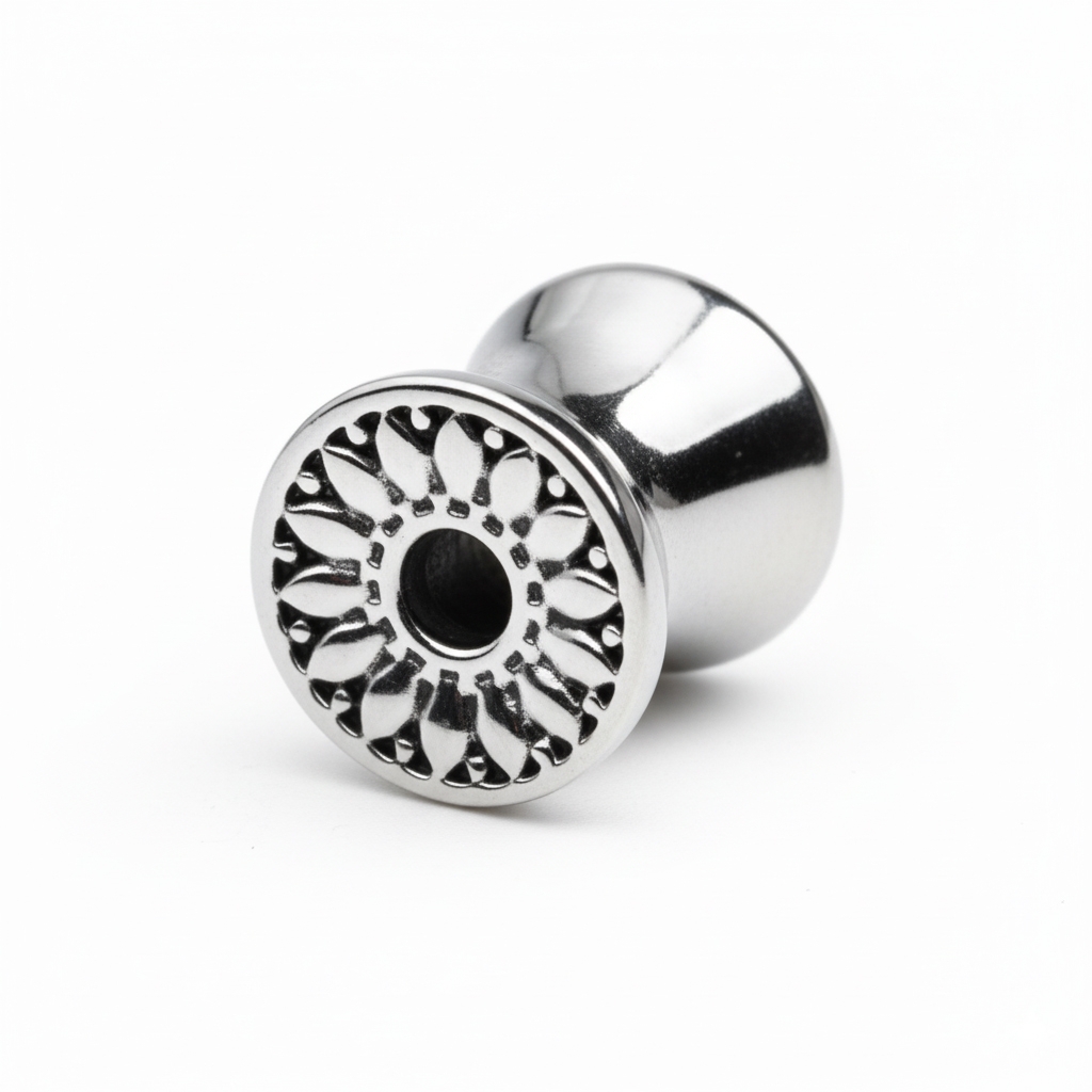 Aus Chirurgenstahl gefertigt ist er robust, wasserfest und für die meisten Hauttypen geeignet. Die aufgeweitete Form an beiden Enden sorgt für sicheren Halt. Kein Gewinde, kein Schnickschnack, einfach reinschieben und los.