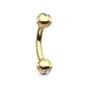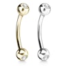 Schöner, feminier Stab aus 14 Karat Gold mit einem funkelnden klaren Stein in beiden Kugeln. Dieser Piercingstab ist perfekt für dich, wenn du gerne das zeitlose, klassische Design mit einem Hauch von Eleganz bevorzugst und. Dieser Stab ist so diskret und schön, daß er fast unschuldig in deinem Piercing wirkt. Das einzig Auffallende werden die beiden glitzernden Steine an den Enden sein, aber ansonsten ist dieser Piercingstab eher diskret und zeitlos.