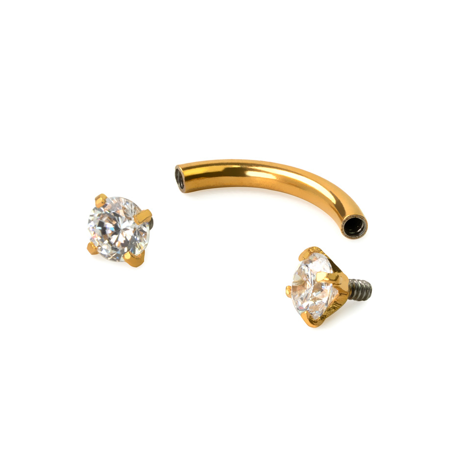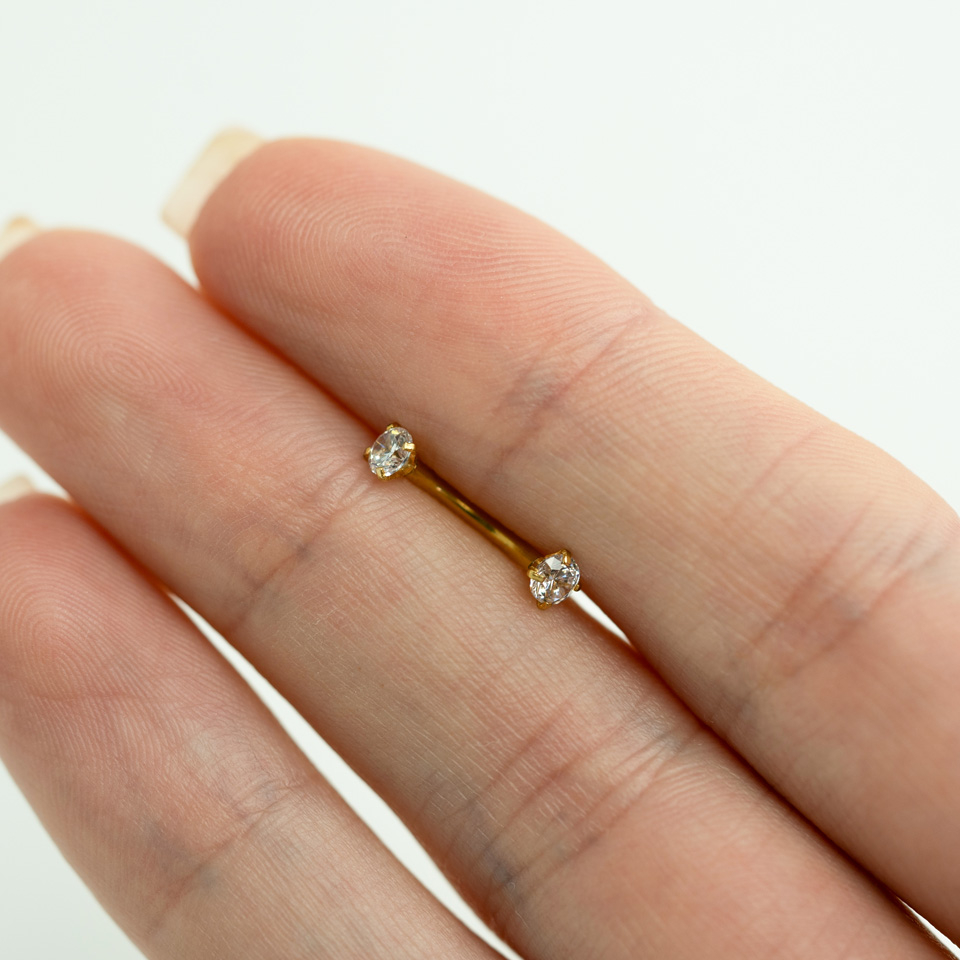 Der Schmuck hat ein innenseitiges Gewinde, welches viel schonender für die Haut ist, als das Standardgewinde. Hier wird nämlich der Stein in den Stab geschraub, so dass das Gewinde nicht außerhalb des Stabes ist. Der Vorteil des innenseitigen Gewindes ist, dass die kleinen, feinen Kanten eines Gewindes deine Haut nicht verletzen können, wenn du den Schmuck einsetzt, was wiederum bei normalen Gewinden passieren könnte.
