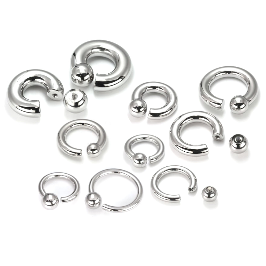 Der neuste Schrei innerhalb der großen Piercingschmuckstücke sind die großen Kugelringe. Diese hier haben eine wirklich benutzerfreundliche Kugel, die leicht auf und abgeschraubt werden kann, anstatt wie sonst zwischen den Enden des Ringes eingeklemmt zu sein. Besonders bei großen Kugelringen kann dies beschwerlich werden. Die Kugeln sitzen hier mit einem kleinen Stab mit Schraubgewinde im Ring fest. Hier brauchst du ausnahmsweise mal kein Geld in einen Ringöffner investieren, der normalerweise ein Must have ist, wenn man mit großen Piercingschmuck arbeitet.
