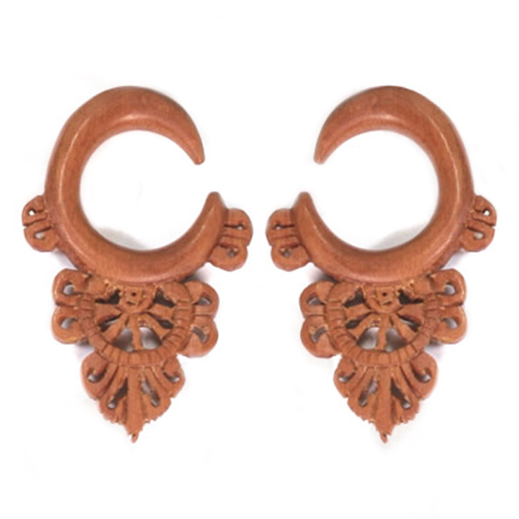 Die Hänger sind von beiden Seiten handgeschnitzt und können von daher im linken sowie rechten Ohr getragen werden.