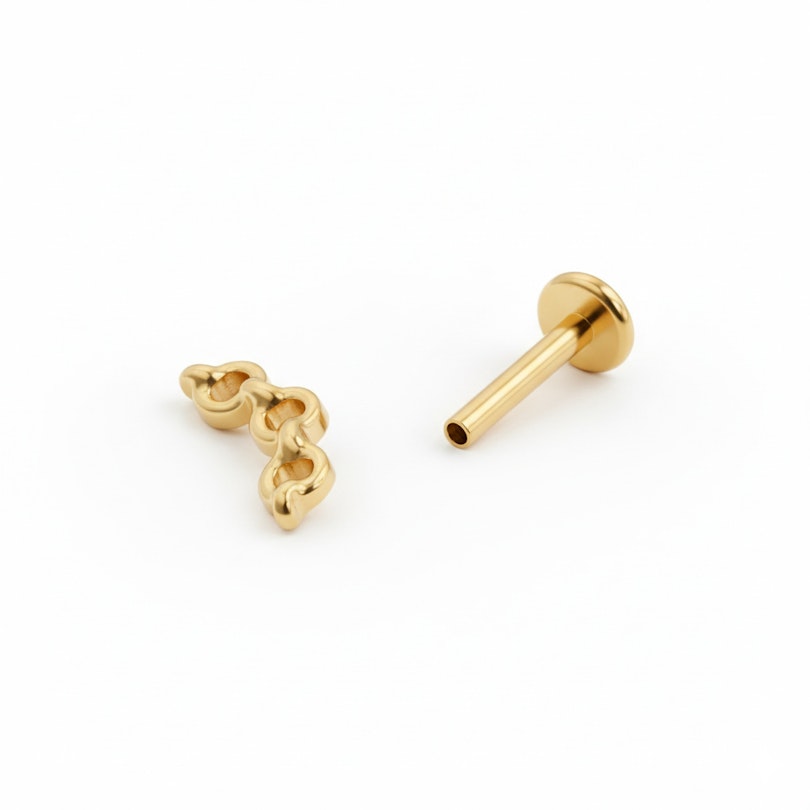 Beim Ketten-Labret aus Titan geht es um Verbindung – nicht nur im Design, sondern auch beim Tragen. Seine sanfte Kurve folgt der natürlichen Form des Ohrs und macht es perfekt für Helix-Piercings, bleibt aber auch in Conch oder Ohrläppchen elegant.