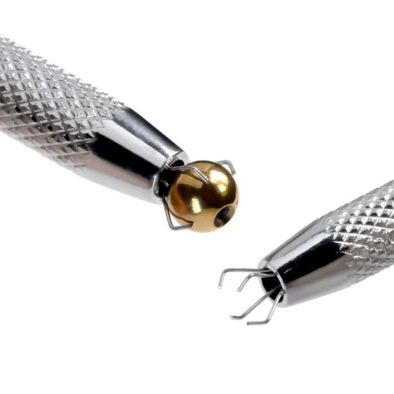 Fast alle kennen das Problem, wenn man gerade dabei ist seinen Piercingschmuck einzusetzen und die kleinen Kugeln plötzlich herunter fallen und man kann sie nicht mehr finden. Mit diesem praktischen Werkzeug kann man dieses Problem ganz einfach umgehen. Die Zange hat vier Greifarme, die ganz einfach ausgefahren werden, wenn man auf den kleinen Stift am Ende der Zange drückt - ähnlich wie bei einem Kugelschreiber. Die Greifarme umfassen die Kugel und fixieren diese sicher. Du musst nur darauf achten, daß die Kugel richtig herum gedreht ist, damit sie auch auf den Stab oder Ring geschraubt werden kann.