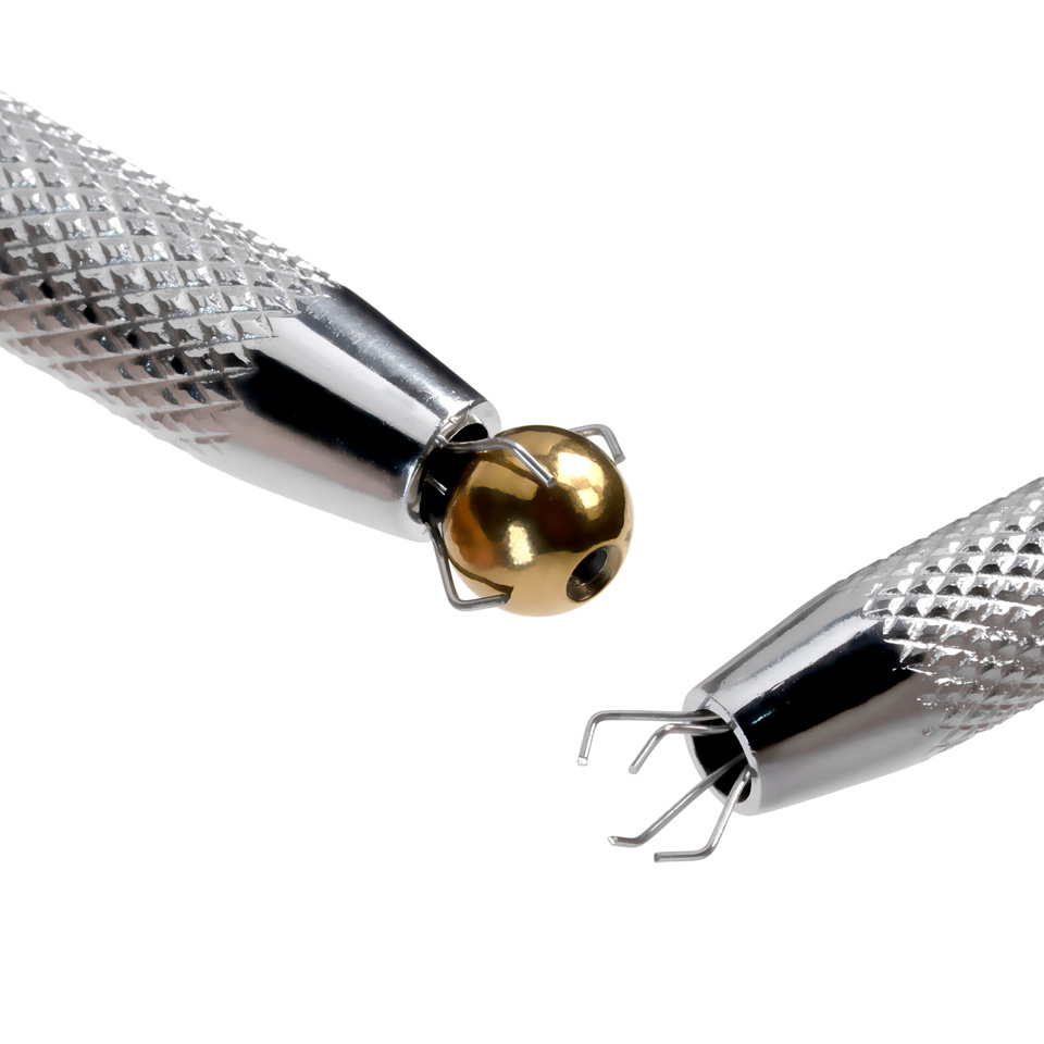 Das Werkzeug hat vier feine Zacken, die sich beim Drücken öffnen und Kugeln zwischen 3 und 6 mm sicher halten, während du sie in deinen Barbell, Ring oder Labret eindrehen kannst. Achte nur darauf, dass das Loch der Kugel nach außen zeigt, dann funktioniert es ganz mühelos.