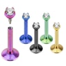 Das Labret ist in fünf Farben erhältlich und hat einen kleinen klaren Stein an der Spitze, egal für welche Farbe du dich entscheidest. Der Stein wird von einer soliden Fassung an seinem Platz gehalten, so daß er nicht heraus fallen kann. So brauchst du dir also keine Sorgen machen, den hübschen Stein plötzlich zu verlieren, wie es bei geklebten Steinen oft der Fall ist.