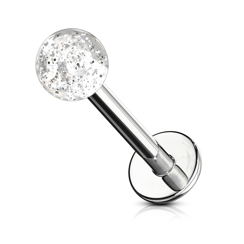 Schönes und freches Labret Piercing aus chirurgischen Stahl mit einer kleinen Acryl Kugel in der Spitze.
