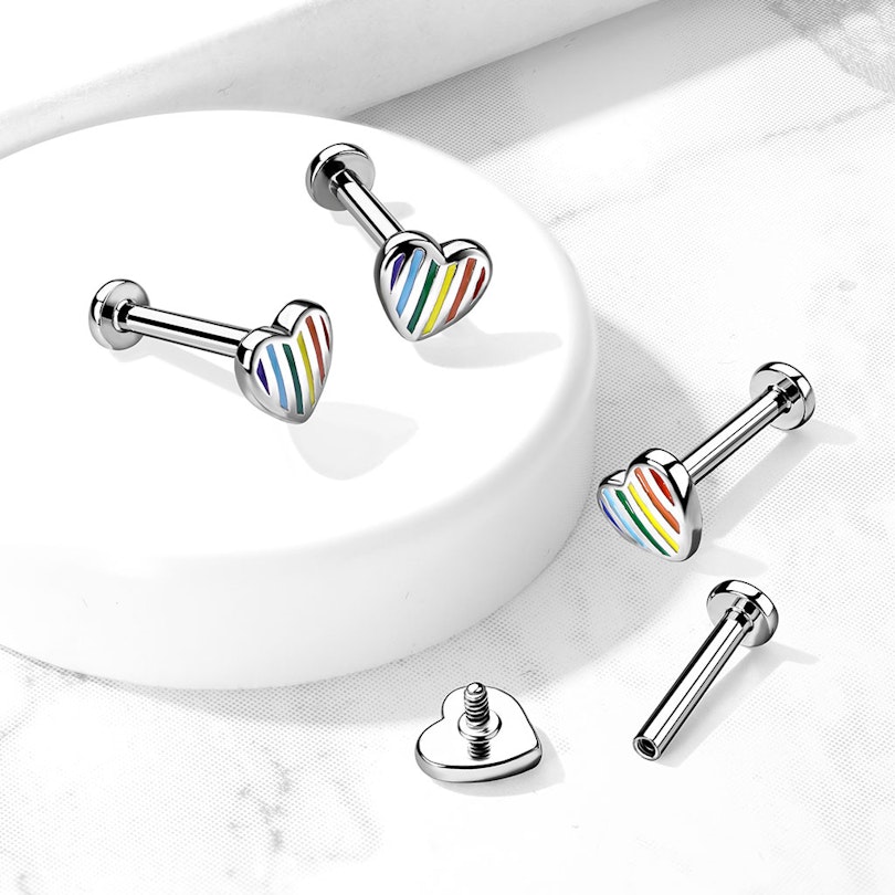 Name: Labret mit Innengewinde und einem Regenbogen Herz